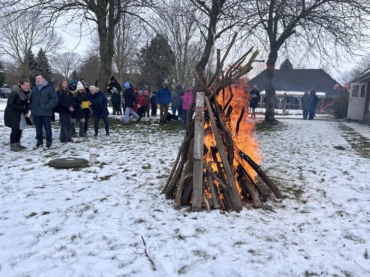 Der blev budt på en sodavand og heedewääken, der er traditionelt frisisk bagværk, inden store og små samledes omkring bålet. Og så var der kun tilbage at tænde det og lade flammerne gøre deres.