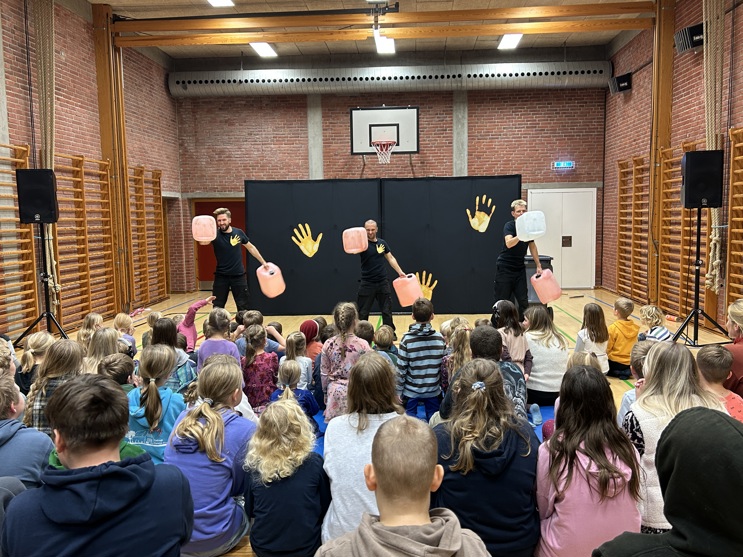 - Vi har øvet rytme i alle klasserne siden efterårsferien. Og vi har da både lavet percussion med kopper og trampet på bordene, smilede han.