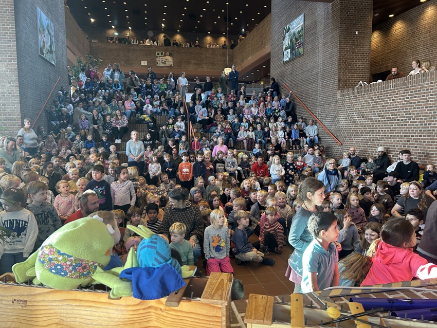 To afdelinger med i alt knap 500 børn fra førskole til 6. klasse var torsdag samlet til Spil Dansk-dag på Duborg-Skolen.
