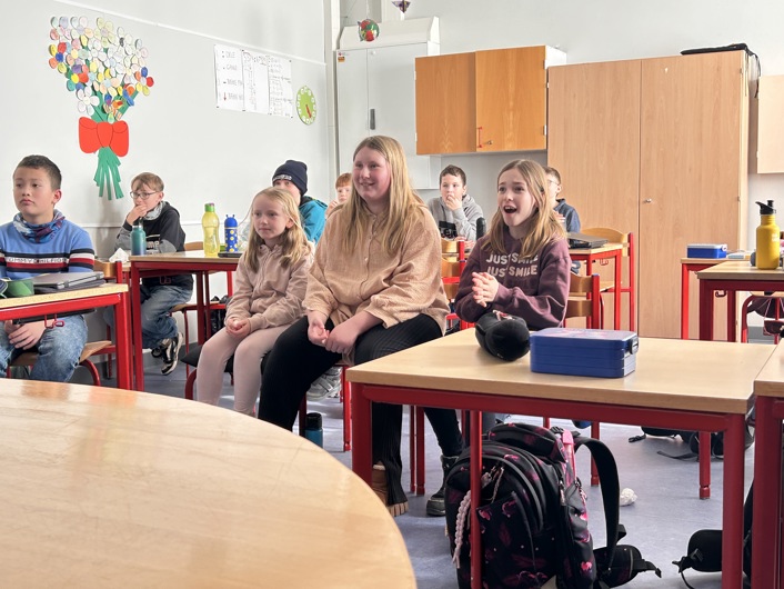 Så stort tillykke til Ina og Mia, Nea fra indskolingen, der har medvirket i podcasten, resten af 5. klasse og lærer Farida Eckardt.