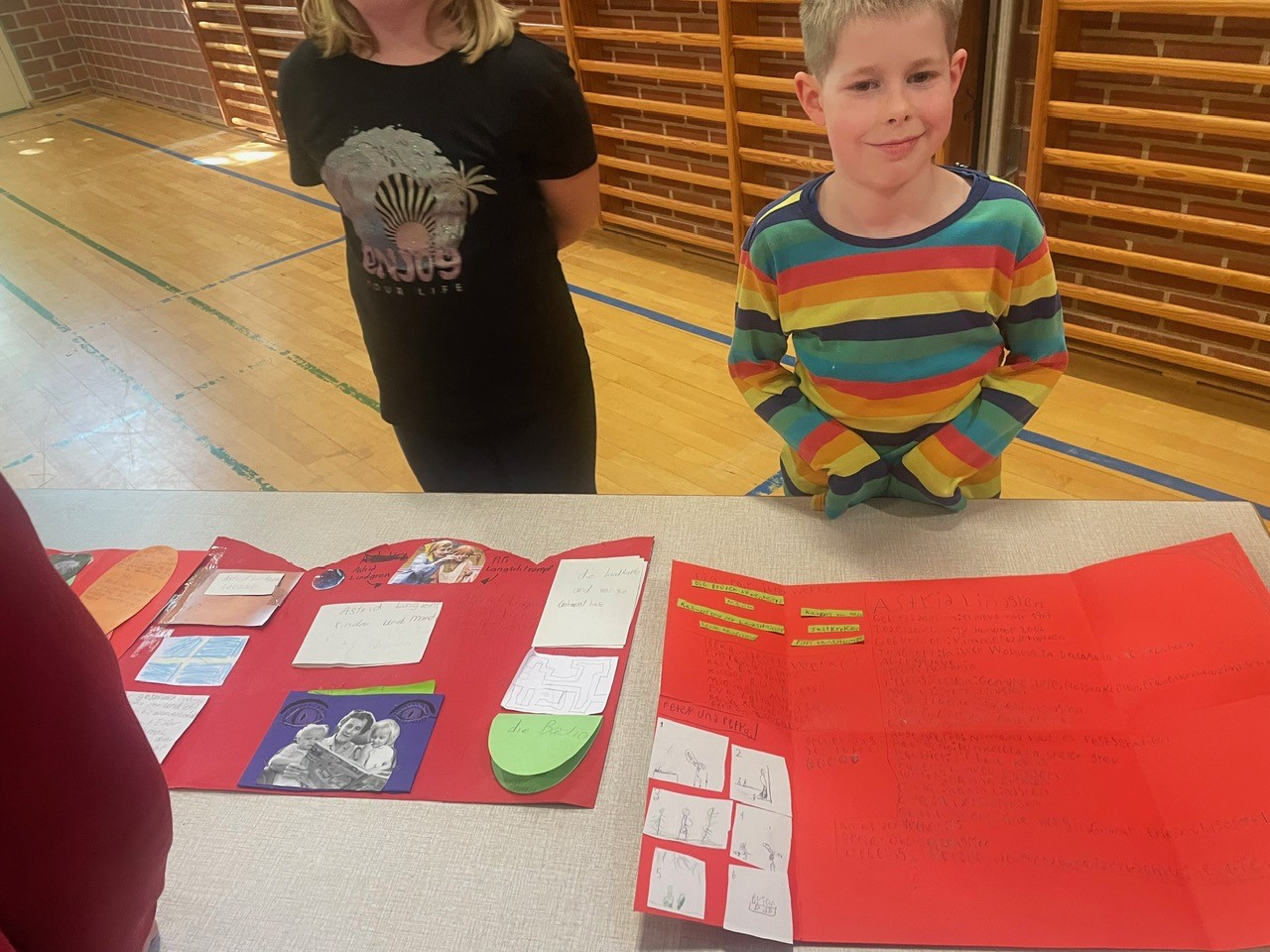 Vi i 3-4 klasse har arbejdet med temaet Astrid Lindgren. Torsdag aften har vi præsenteret vores arbejde. Vi har lavet fem film i femmergrupper. Vores film har vi præsenteret på smartboardet i bagerste del fra sportshallen. Filmene handlede om at to personer fra Astrid Lindgrens historier møder hinanden. Vi har også lavet træfigurer i natur teknik som vi har udstillet. Hver elev har også lavet en træfigur. Vi har også haft et buffet med lækre ting som forældrene har lavet.