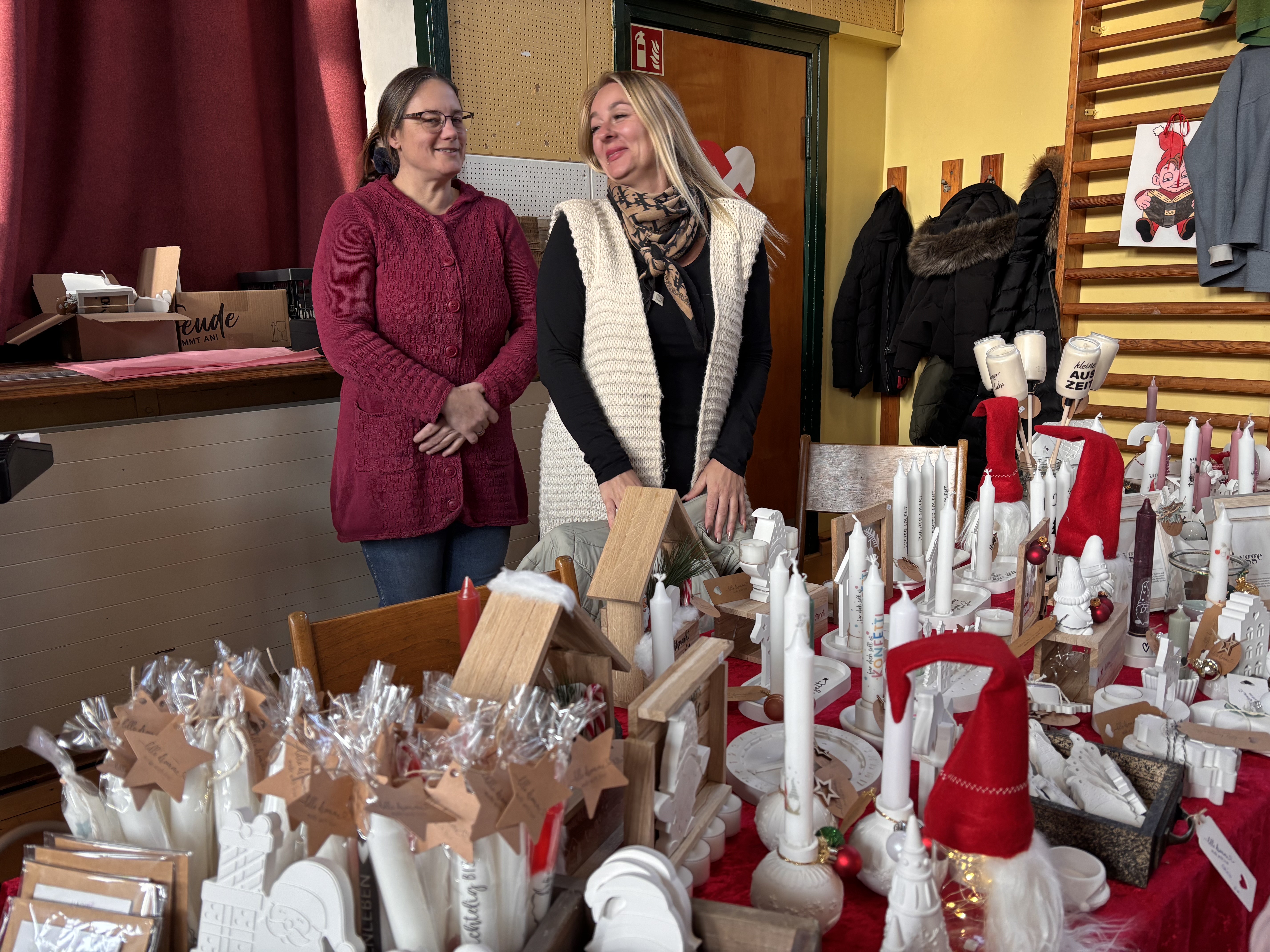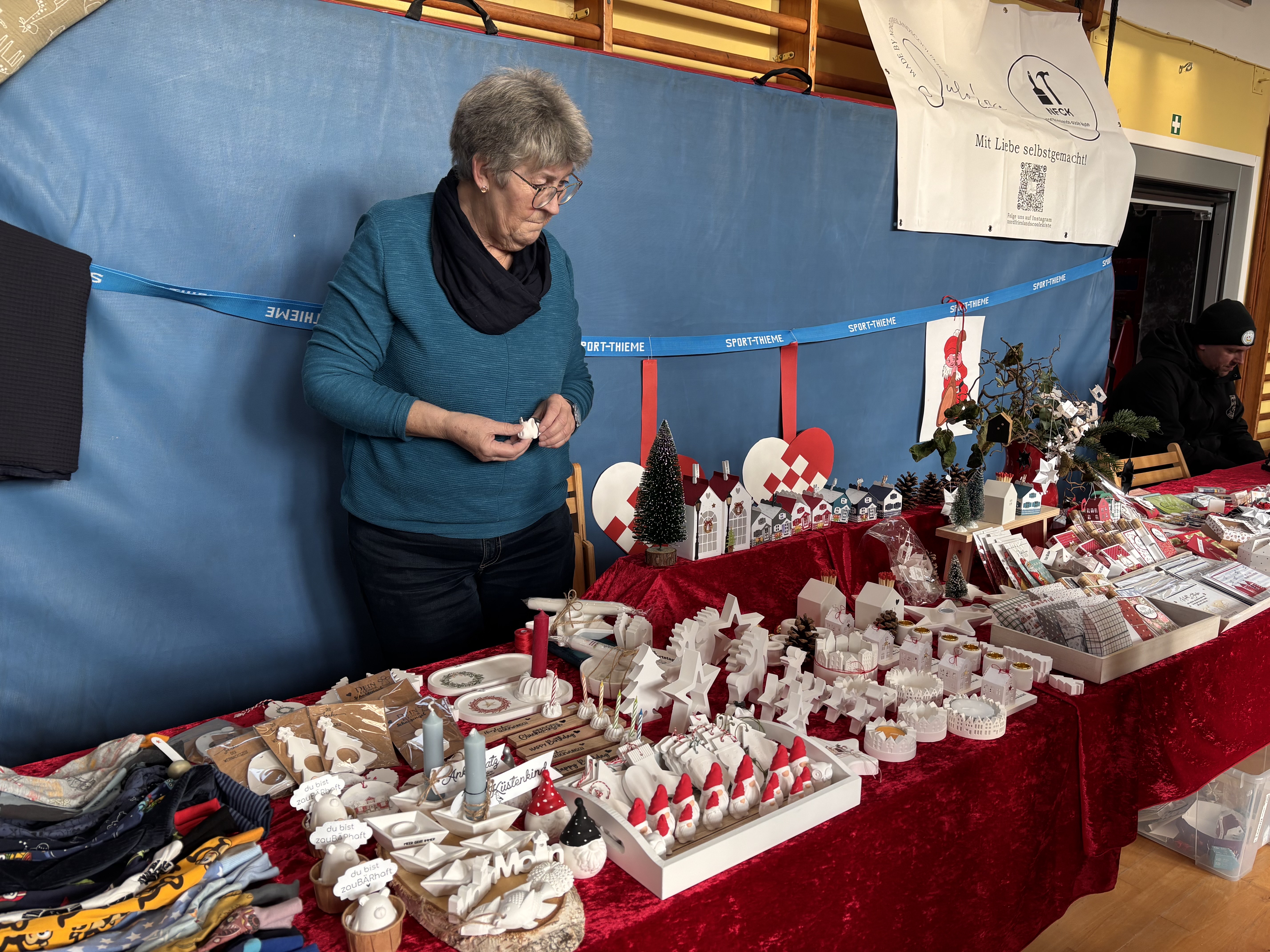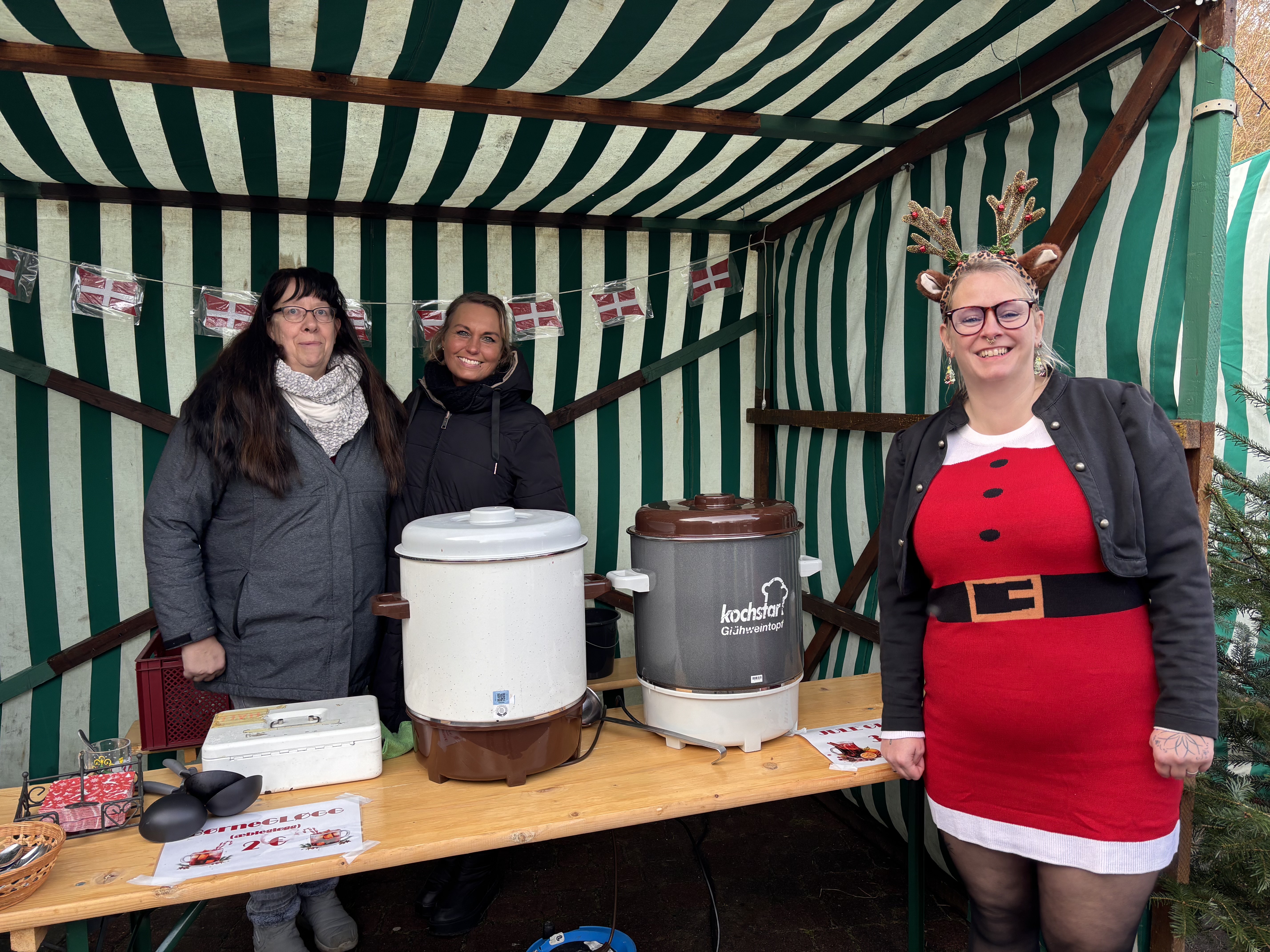 Efter rigtig mange år kunne vi igen afholde vores julemarked i gymnastiksalen – og hvilken tilbagekomst! I år var vi så heldige, at IF Tönning stillede klubhuset til rådighed, så området kunne udvides med en hyggelig indendørs gårdhave fyldt med boder. Her blev der budt på alt fra gløgg og grillpølser til varm drikkelse og bålhygge, som skabte den helt rette julestemning.
