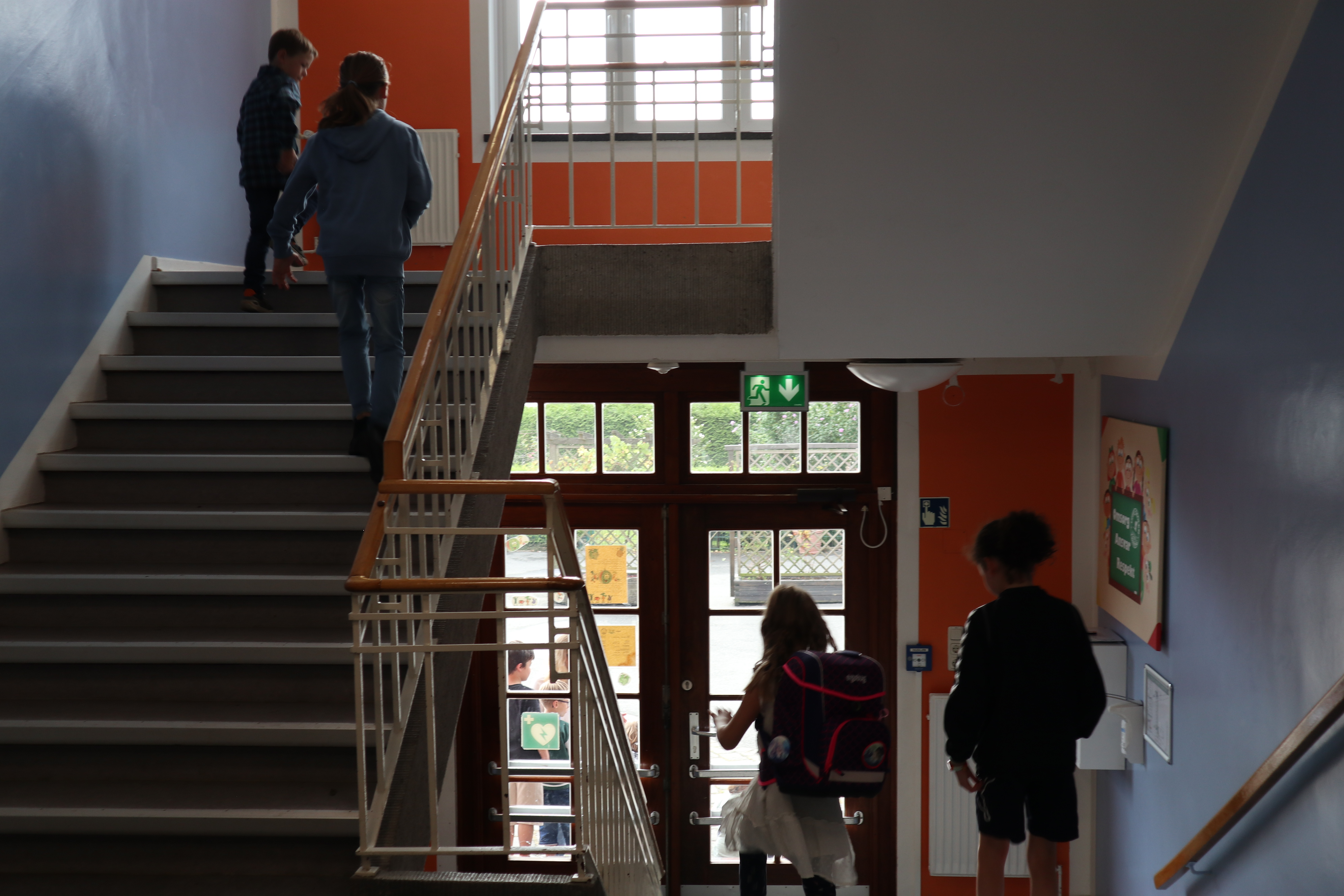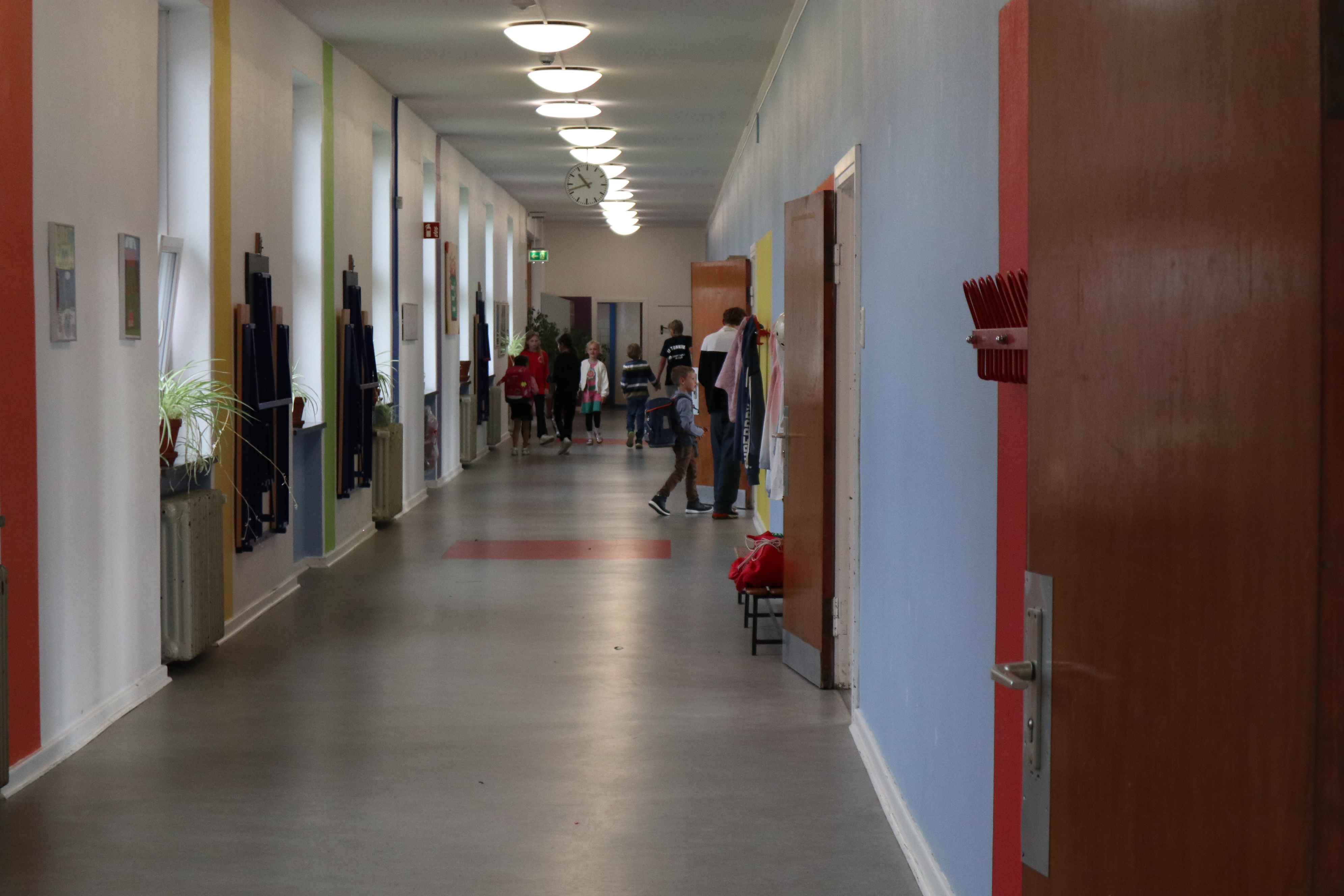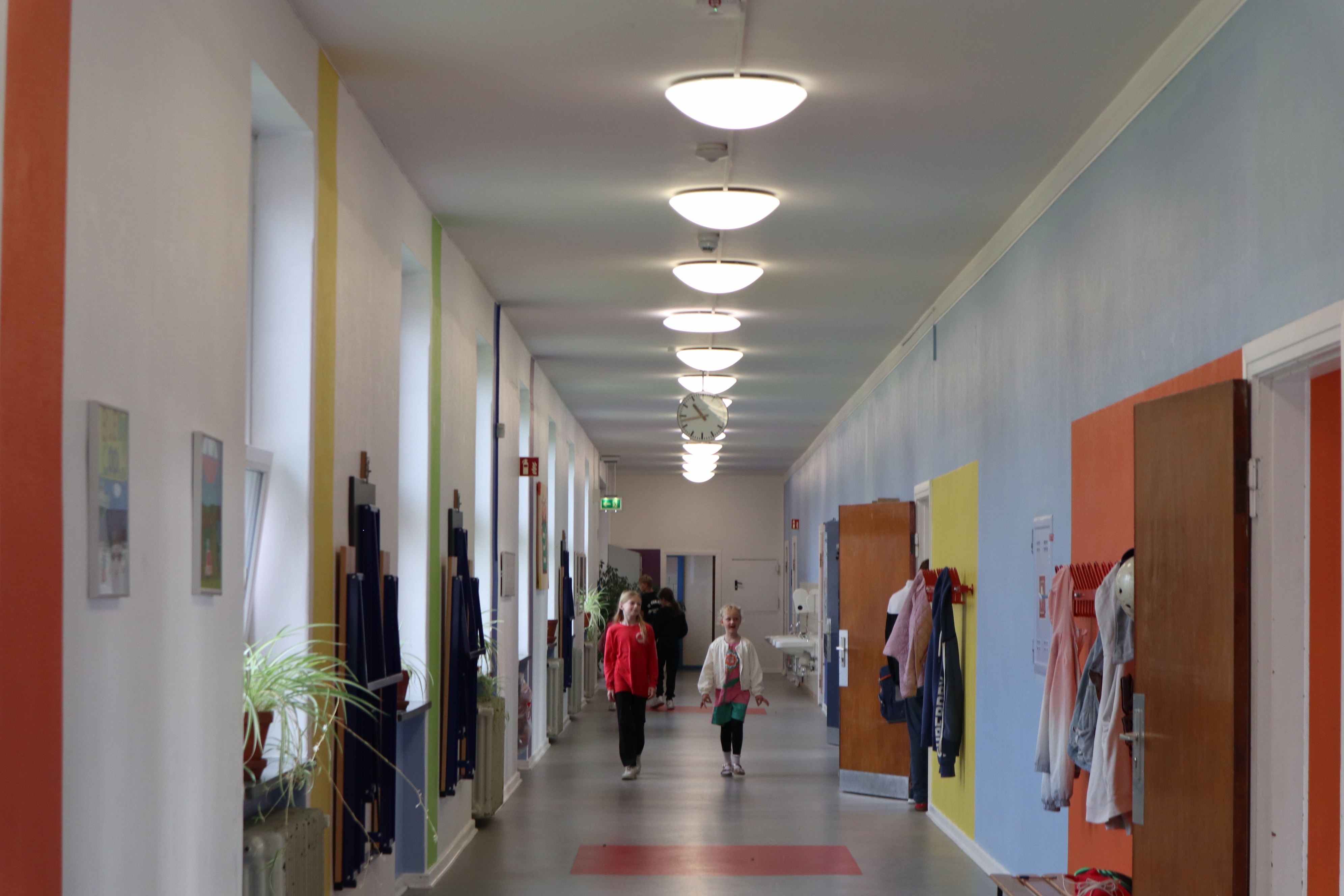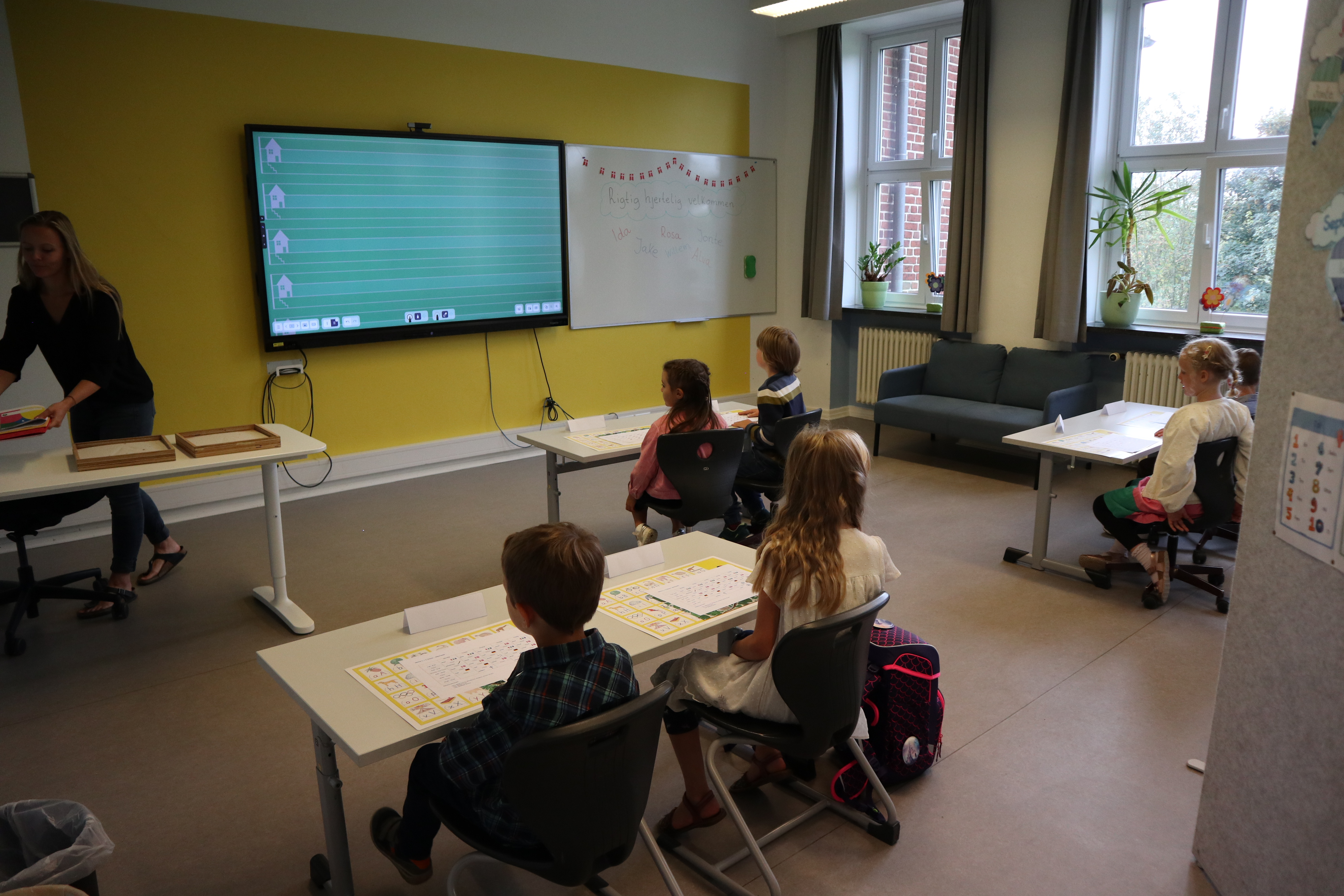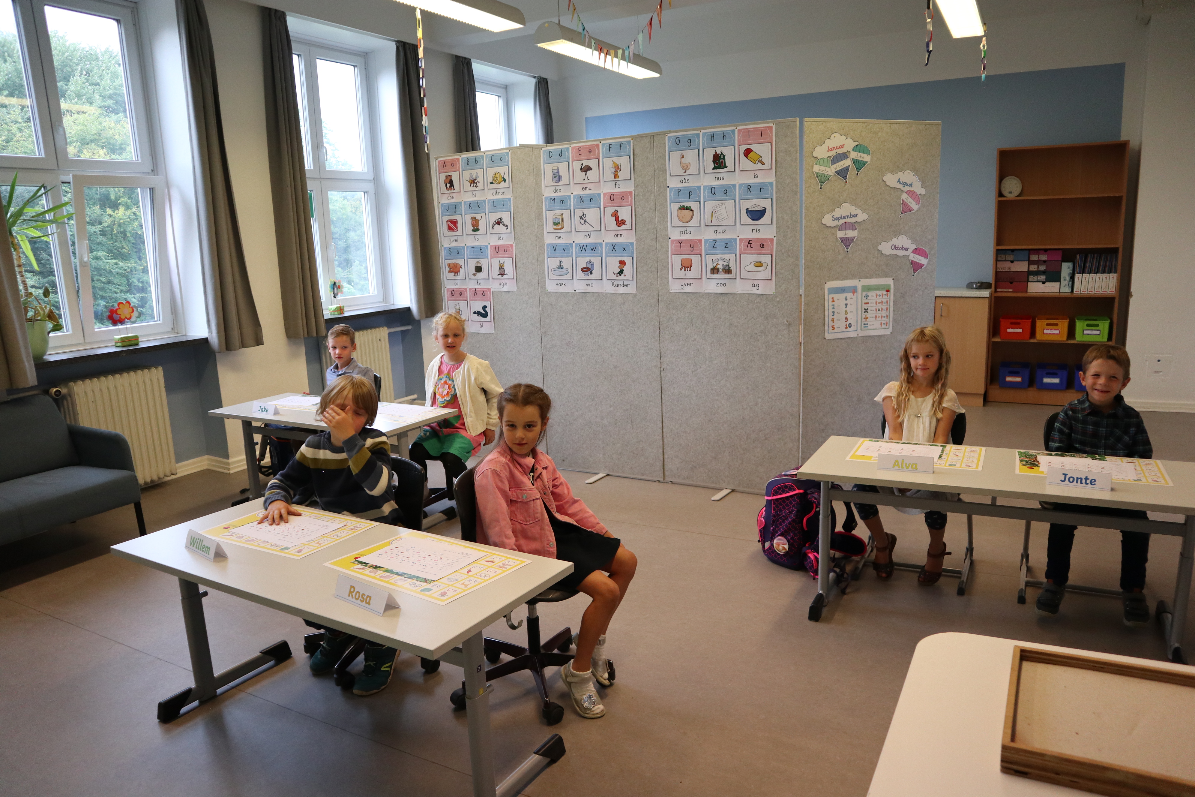 Dagen fortsatte med rundvisning, hvor skolevennerne viste de nye børn rundt på skolen som sluttede med at de aflevere dem i klasseværelset. Her ventede Stine med deres allerførste undervisningstime. Imens kunne forældrene nyde rundstykker og en velkomsttale fra Göran.