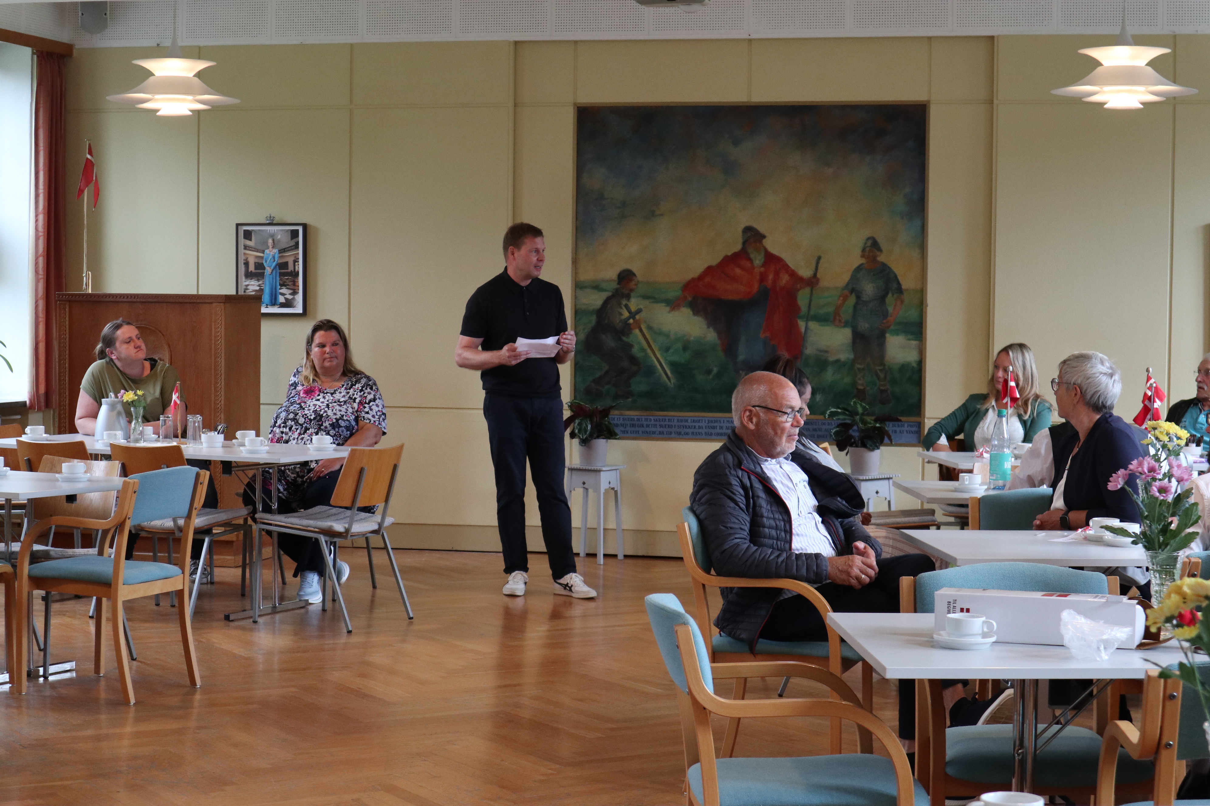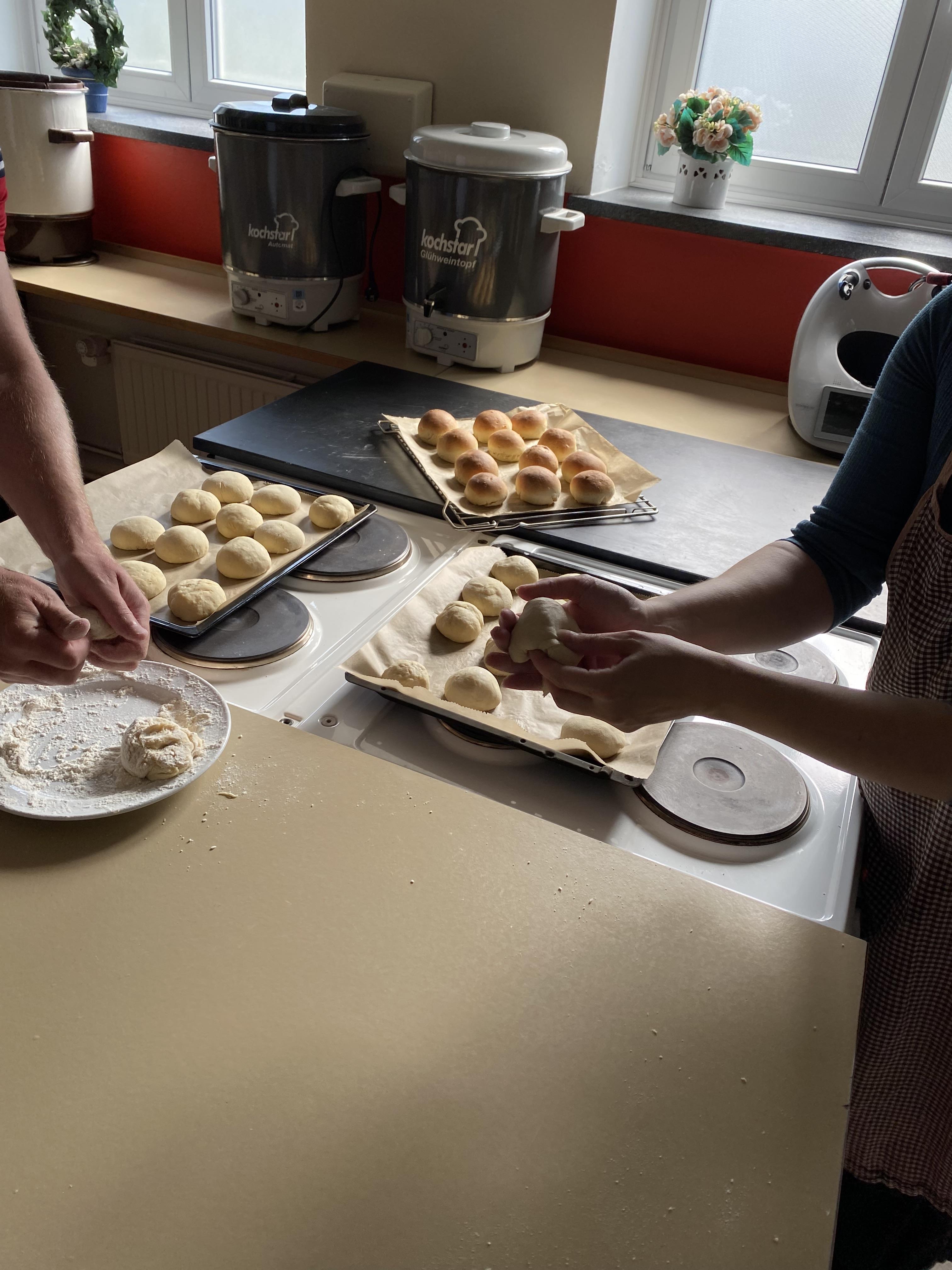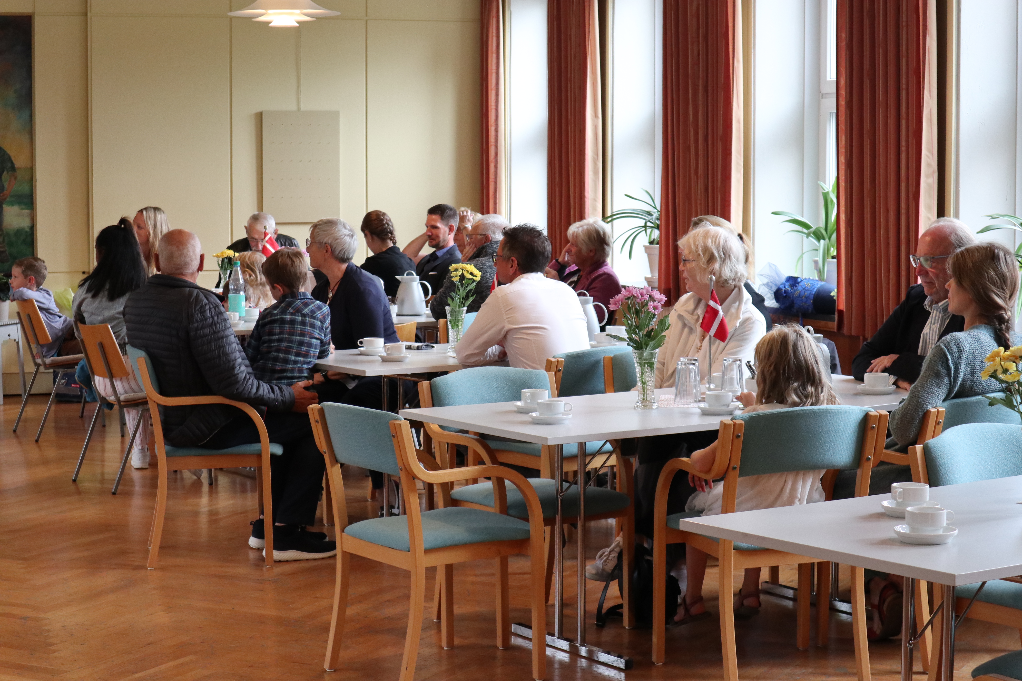 Dagen begyndte i kirkesalen, som var smukt pyntet til anledningen. Her stod en lækker buffet klar med friskbagte boller, smør, ost og pålæg – en fast tradition på skolen. Bollerne var bagt i forvejen af Göran og skolesekretær Clara, mens Manuela og Sabrina fra rengøringsteamet sammen med pedel Sönke havde sørget for den flotte anretning med kaffe og tilbehør.